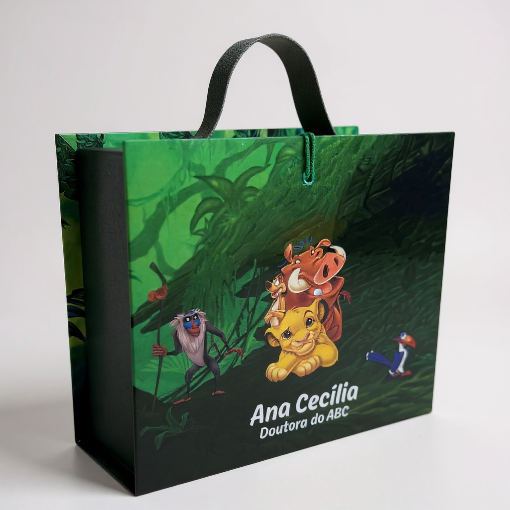 A estrela do show chegou em grande estilo! Nossa maleta personalizada traz muito mais do que uma lembrança bonita — ela é o palco perfeito para momentos inesquecíveis. Dentro, um mini kit karaokê composto por um microfone e uma caixinha de som, pronto para transformar qualquer lugar em uma verdadeira apresentação.