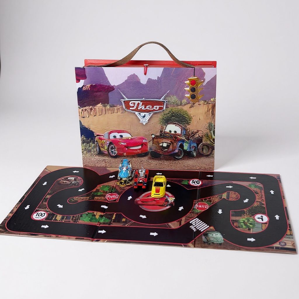 Essa maleta personalizada dentro dela, tem 01 (um) carrinho de corrida e uma pista cheia de desafios!