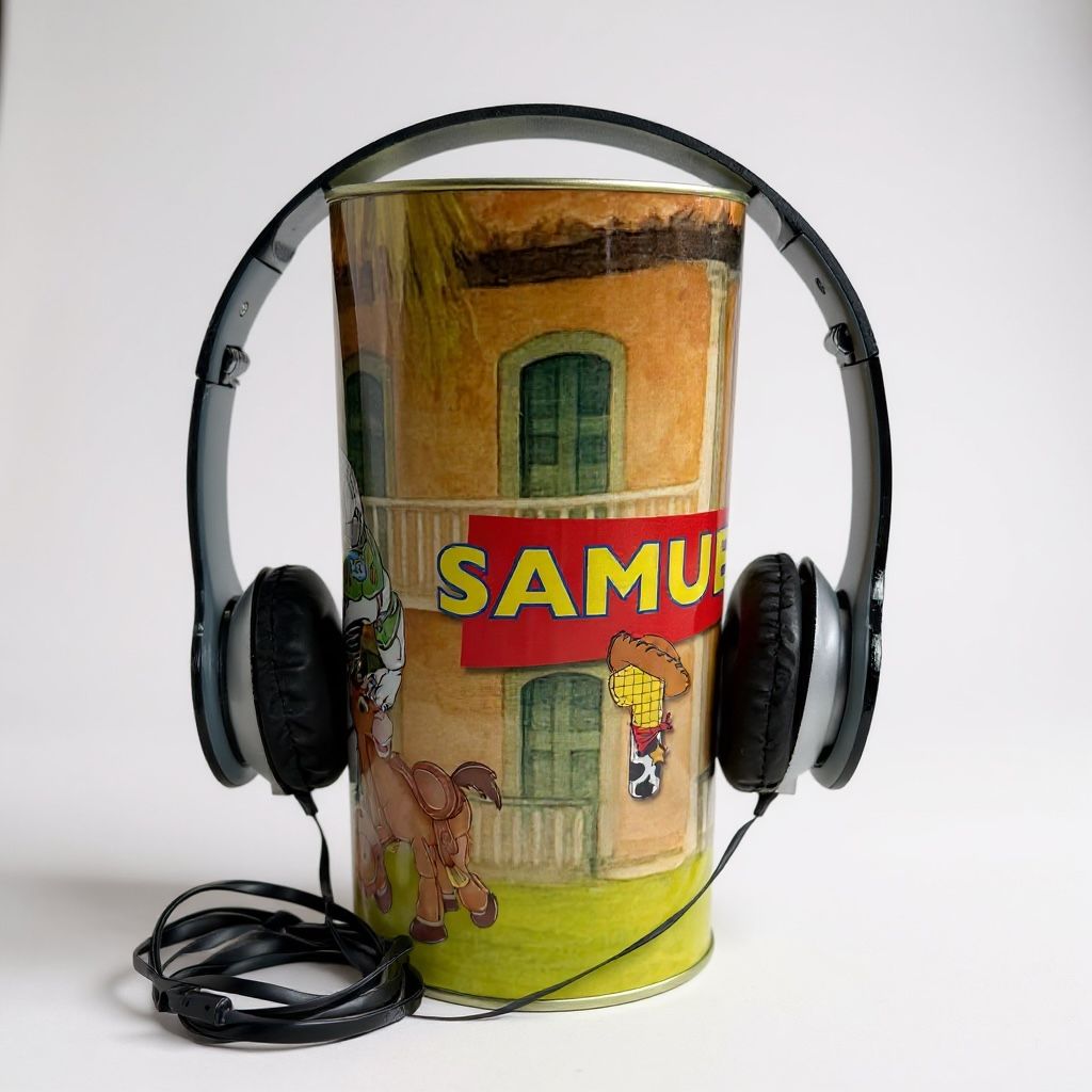 Com design personalizável, a lata se torna uma lembrança inesquecível, enquanto o fone de ouvido garante praticidade e diversão para os convidados.
