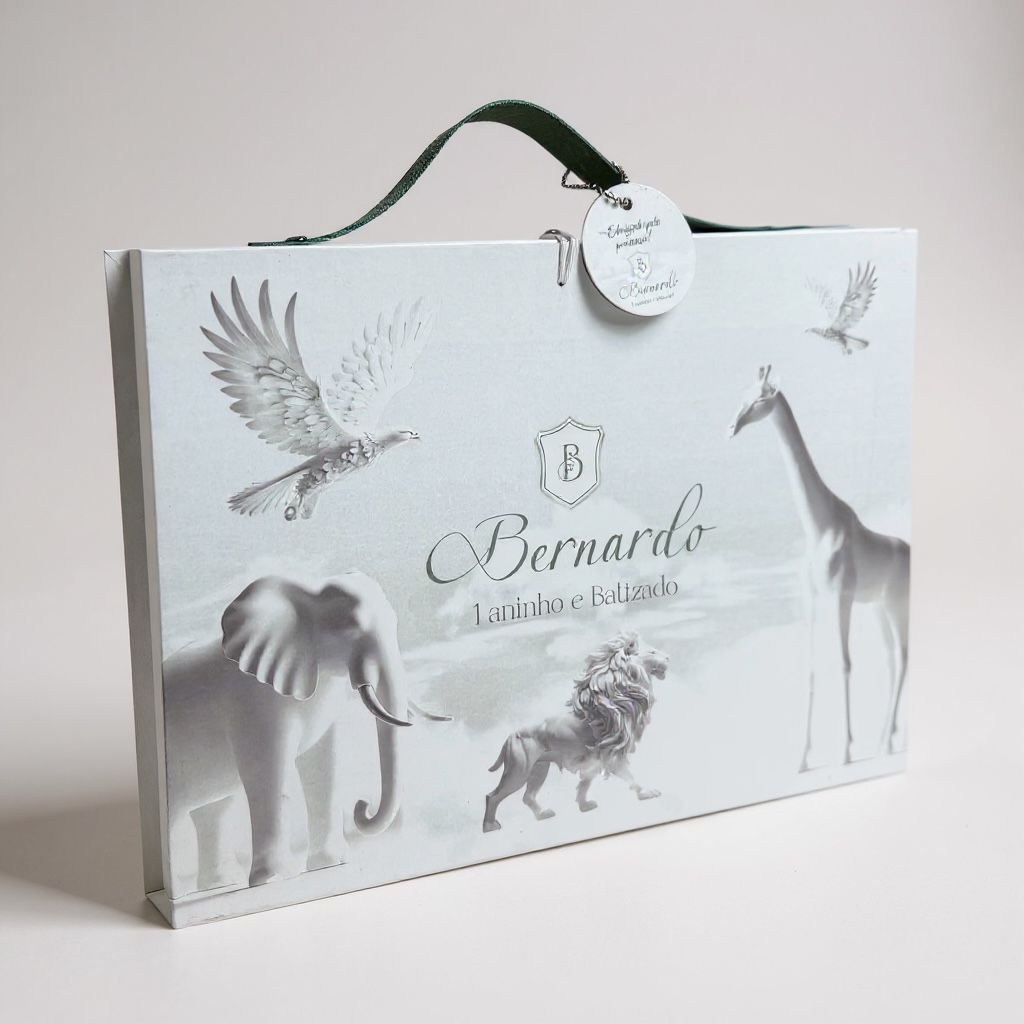 Além de funcional e criativa, a maleta pode ser personalizada com nome, tema ou identidade visual do evento.